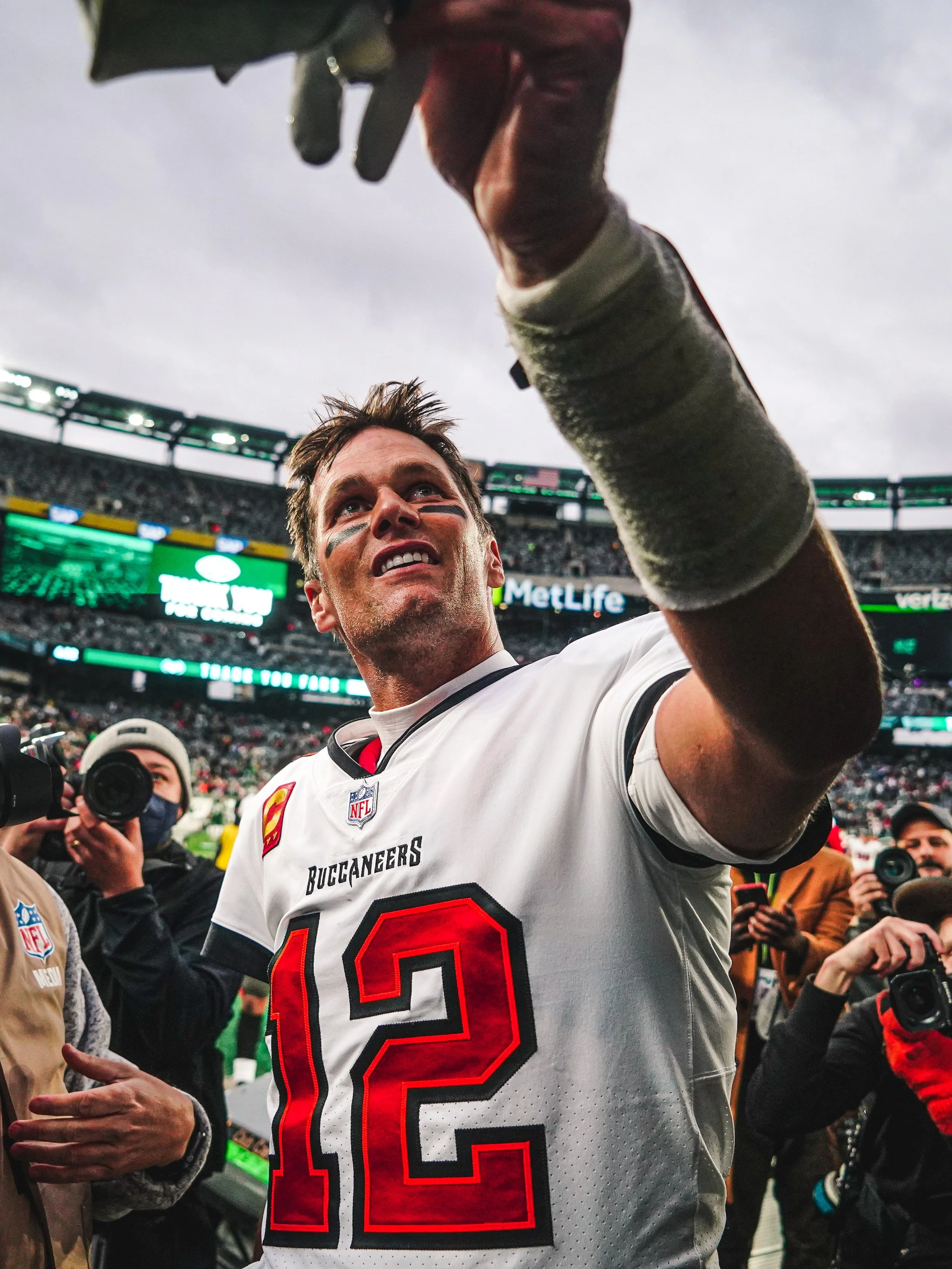Tom Brady #12 of the Tampa Bay Buccaneers walks off the field after defeating the New York Jets View fullsize